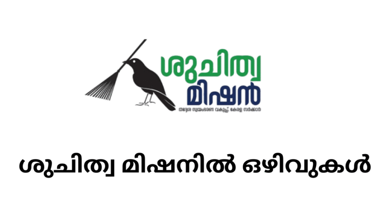 ശുചിത്വ മിഷനിൽ ജോലി നേടാം; ഓഗസ്റ്റ് 19 വരെ അപേക്ഷിക്കാം.